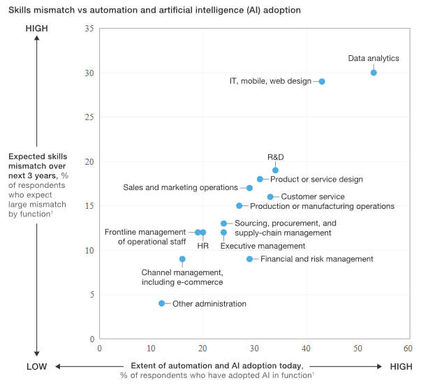 Опрос показывает, что функции, которые уже наиболее автоматизированы, испытывают самые большие несоответствия навыков. К ним относятся: